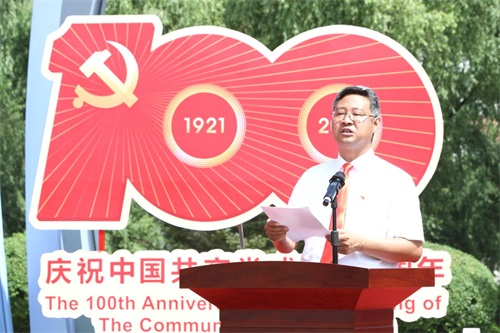 他表示,中国共产党自1921年诞生至今,已经走过了100年的光辉历程。这100年,是我们党探索救国图强真理、开辟民族独立和民族振兴道路的100年;是我们党不断发展壮大、以实际行动和辉煌业绩赢得人民群众衷心拥护的100年。100年波澜壮阔的历史雄辩证明,中国共产党不愧是一个伟大、光荣、正确的马克思主义政党,是领导中华民族走向伟大复兴的核心力量,只有在中国共产党的坚强领导下,我们的国家才能富强,民族才能振兴,人民才能幸福。