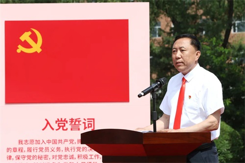新党员入党宣誓,老党员重温入党誓词。由党委书记单联成同志领誓。