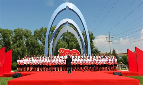 机关大合唱《向往》,学校党委班子和近百名教职工齐声合唱,将汇演气氛推向高潮。最后,汇演在全场齐唱《没有共产党就没有新中国》中落下帷幕。