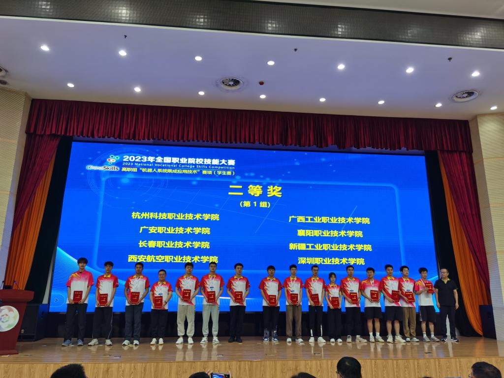 8月21日,2023年全国职业院校技能大赛高职组“机器人系统集成应用技术”赛项(学生赛)在山东职业学院落下帷幕。来自全国28个省(市)、自治区的79支代表队共158名选手同场竞技。