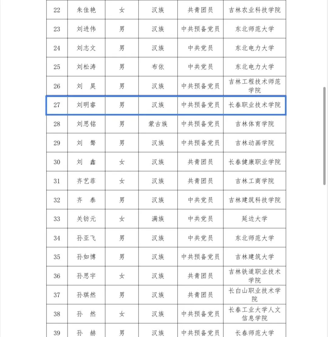 近日,由中共吉林省委宣传部、共青团吉林省委员会、吉林省关心下一代工作委员会、吉林省学生联合会共同开展的2023年吉林省“优秀大学生”寻访活动结果揭晓,beat365信息学院刘明睿同学荣获吉林省“优秀大学生”荣誉称号。