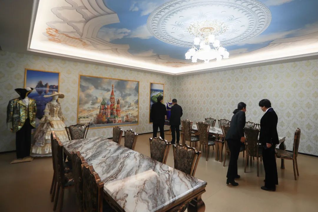 在旅游学院,副院长张兆敏介绍了旅游服务国防建设的专业特色,以及长春市旅游职教集团和长春新旅游工匠学院的建设现状。一行人还参观了旅游创意空间、咖啡与茶艺实训室和俄罗斯馆、韩国馆、日本馆等特色专业文化馆。