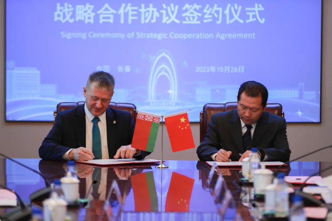 尤里·拉玛努斯基校长和王军校长共同签署了《长春职业技术学院与波洛茨克国立大学战略合作协议》。