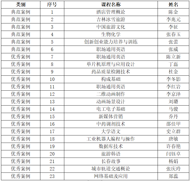 吉林省高校课程思政教学案例公示名单
