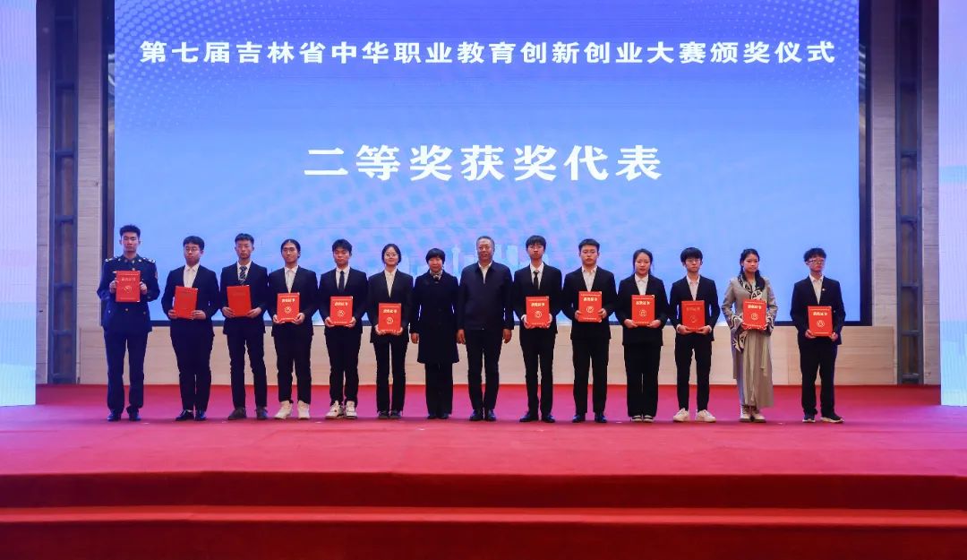 颁奖仪式由吉林省中华职业教育社专职副主任刘海主持,他指出立足新时代新征程,希望广大青年学子深入学习习近平新时代中国特色社会主义思想,立志做有理想、敢担当、能吃苦、肯奋斗的新时代好青年,不负韶华,不负时代,不负人民,在创新创业的路上走得更稳更实更远。希望社会各界继续关心支持职业教育,不断厚植创新创业土壤,积极弘扬“劳动光荣、技能宝贵、创业伟大”的时代风尚,推动吉林现代职业教育高质量发展,为全面建设社会主义现代化新吉林作出新的更大贡献。