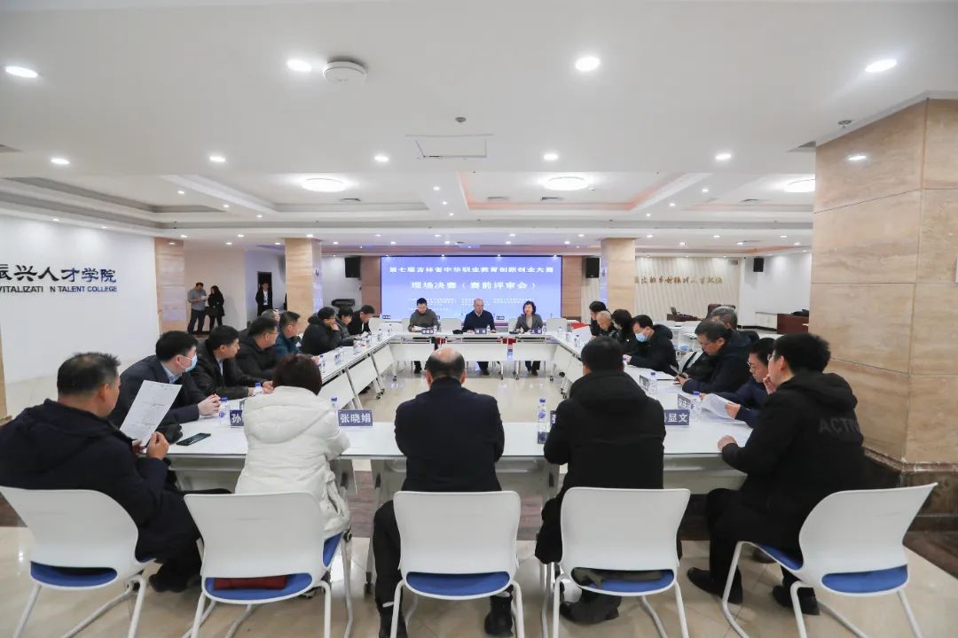 上午8:10分,在长春市乡村振兴人才学院一楼报告厅,第七届吉林省中华职业教育创新创业大赛决赛赛前评审会隆重召开,拉开现场决赛的序幕,beat365王颖副校长出席会议并讲话,吉林省中华职业教育社专职副主任刘海对打分规则进行解读。