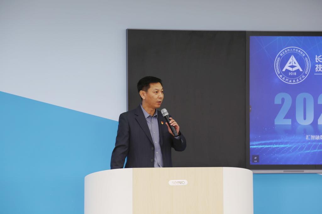 长春职业技术学院副校长朱国辉在论坛上致辞。朱国辉代表学校对此次论坛的召开表示热烈的祝贺,她指出,校企协同育人,需要不断地对办学模式和运行机制进行创新,实现高素质技能型人才的培养,助力商贸学院科技增长,促进成果转化,加快产业化进程。