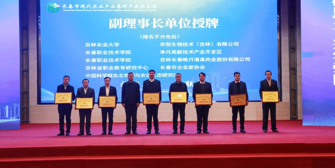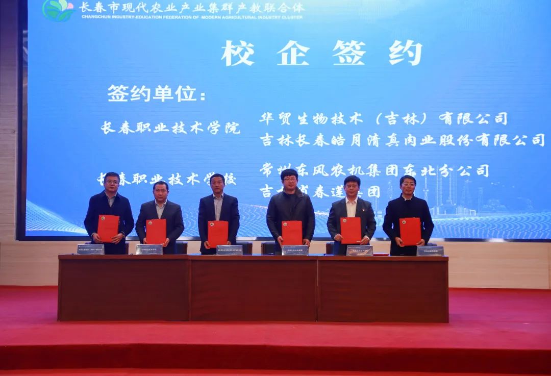 为深入贯彻落实习近平总书记在新时代推动东北全面振兴座谈会提出的“要以发展现代化大农业为主攻方向,加快推进农业农村现代化”的指示精神,按照教育部《关于加快推进现代职业教育体系建设改革重点任务的通知》要求,2023年12月21日,在吉林省教育厅、吉林省农业农村厅的指导下,由吉林长春国家农业高新技术产业示范区、吉林农业大学、长春职业技术学院、华贸生物技术(吉林)有限公司4家单位牵头,联合净月高新技术产业开发区、20所涉农院校、58家企业、13家科研院所(平台)、4家行业组织,共计95家单位成立“长春市现代农业产业集群产教联合体”。