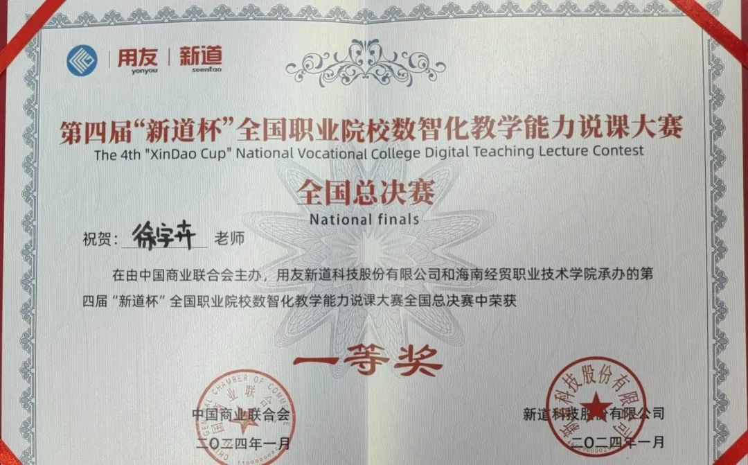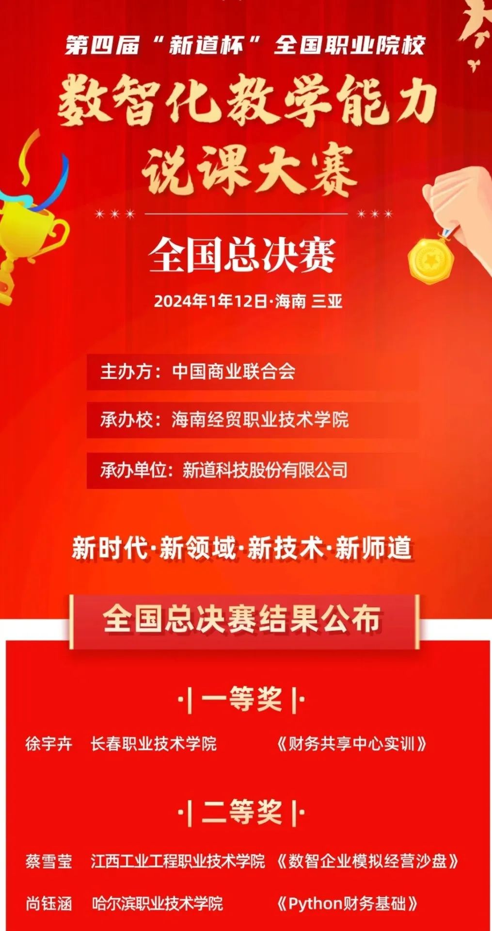 1月12日,由中国商业联合会主办的第四届“新道杯”全国职业院校数智化教学能力说课大赛圆满落下帷幕!