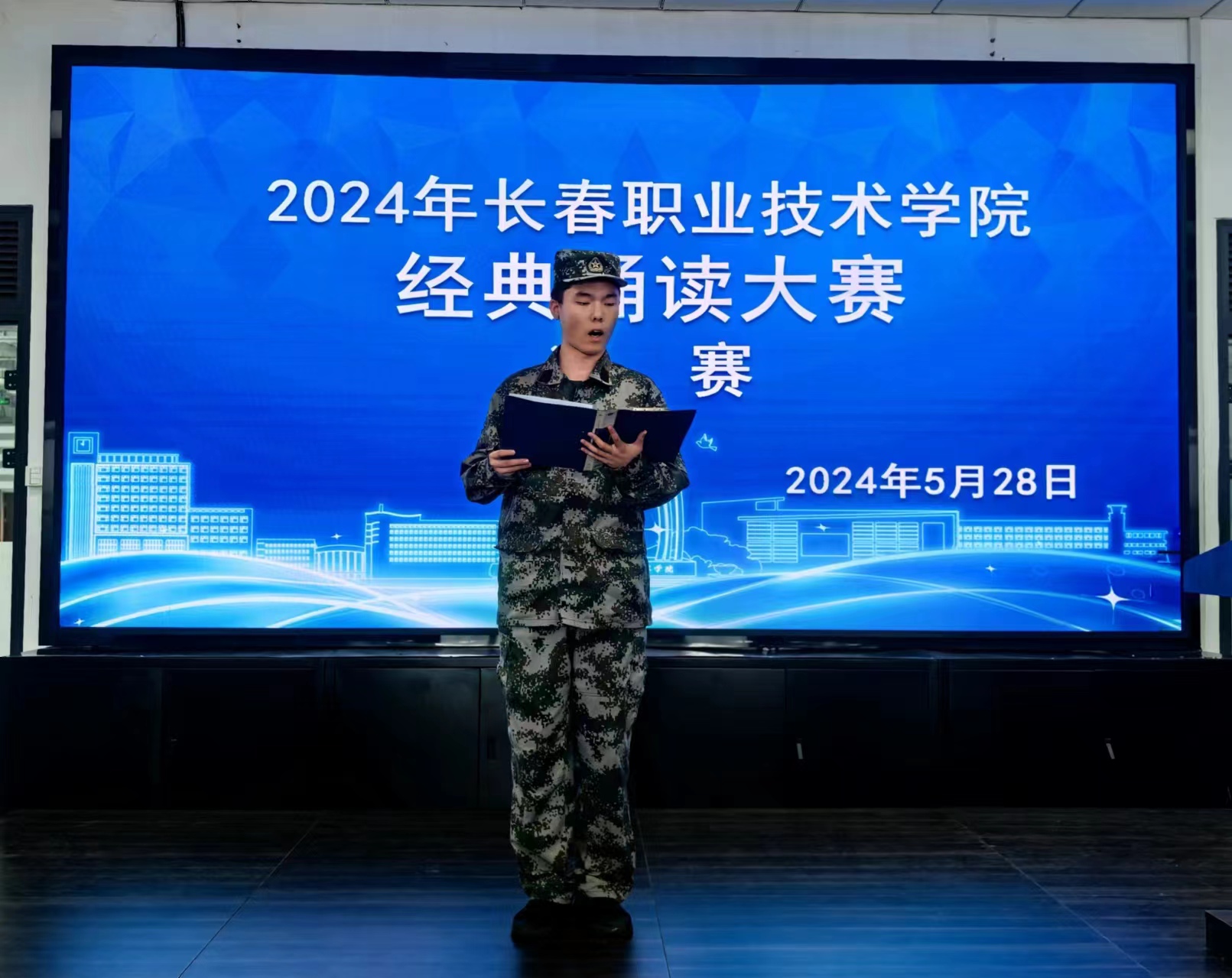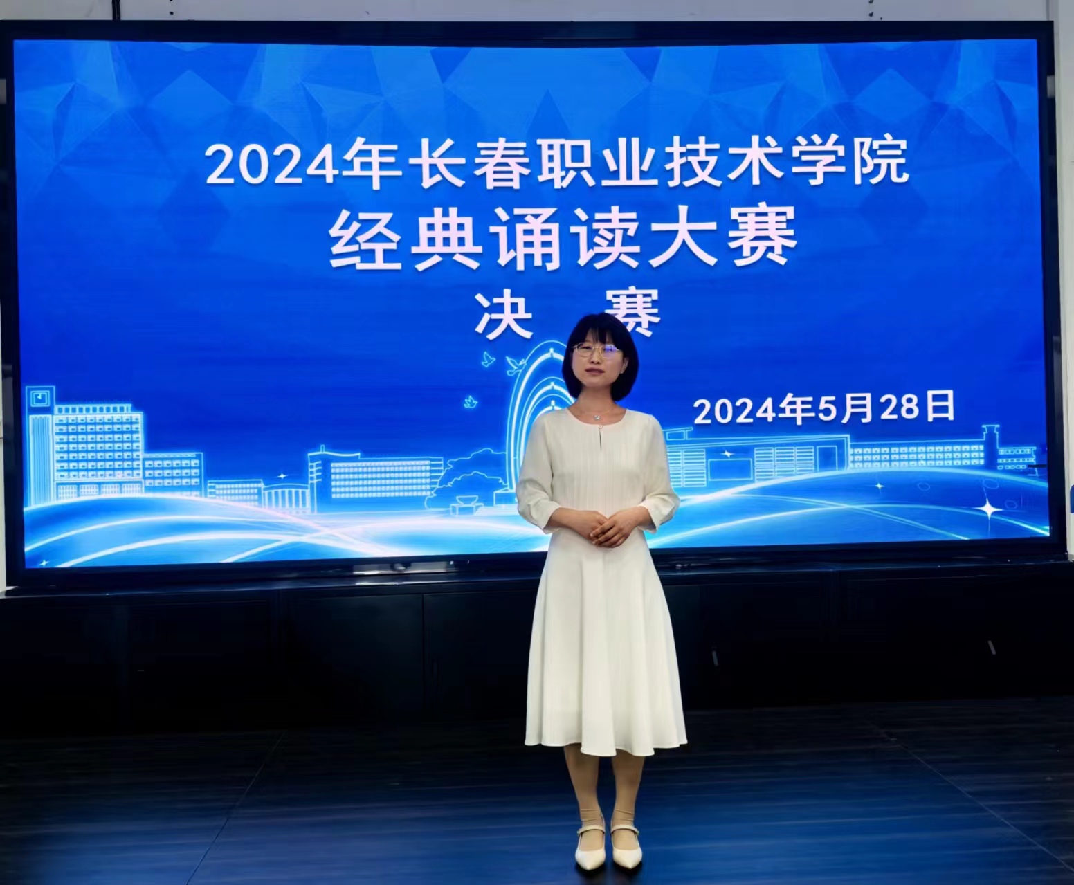 “经典”的语言,典藏着五千年悠久的历史文化;“经典”的声音,演绎着不朽历史的风骨铿锵。5月28日下午,2024年长春职业技术学院经典诵读大赛决赛在体育馆如期举行。本次大赛采用视频初赛、现场决赛的方式。经初赛进行评比,遴选出7名教师、41名同学进入决赛。职业基础部副部长刘春波、语文教研室主任董晓平及史立群、赵丹、邢郁馥、孙淑鸿等老师担任大赛评委。