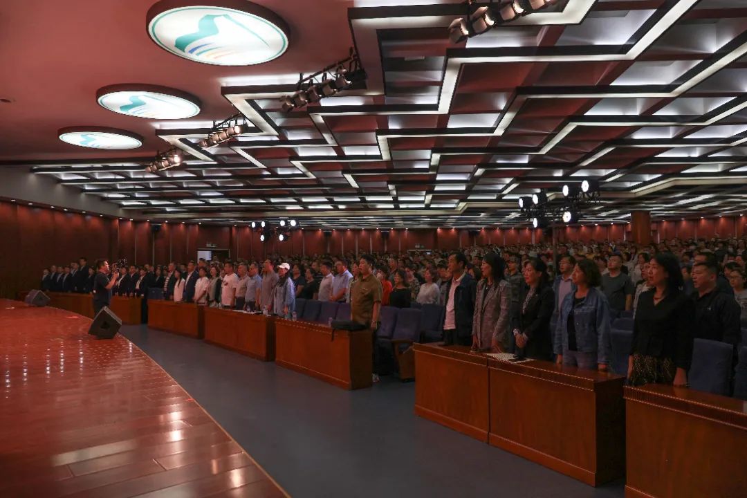 大会在雄壮的国歌声中拉开帷幕,全体与会人员庄严肃立、齐唱国歌。