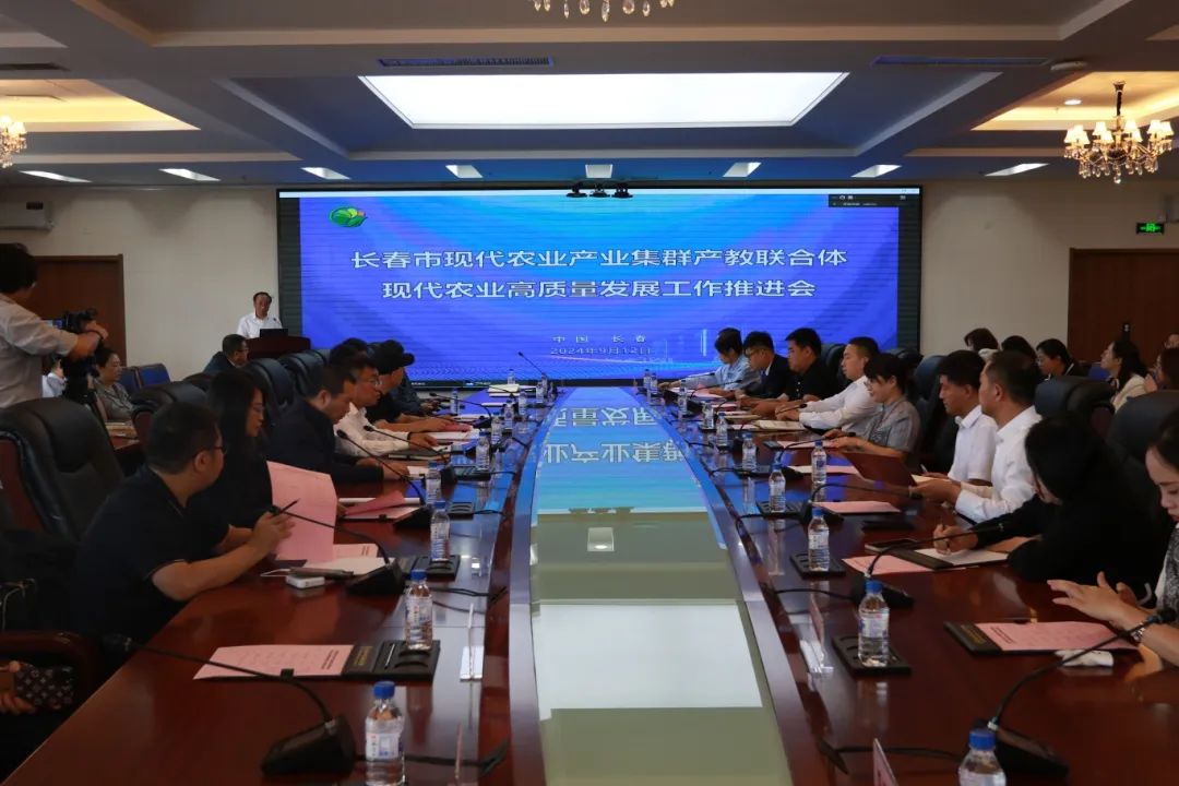 为深入贯彻现代职业教育体系改革精神,切实推进市域产教联合体的建设工作,主动对接现代农业产业发展,响应新质生产力建设,进一步深化职普融通、产教融合、科教融汇,9月12日上午,“长春市现代农业产业集群产教联合体”现代农业高质量发展工作推进会在长春职业技术学院召开。