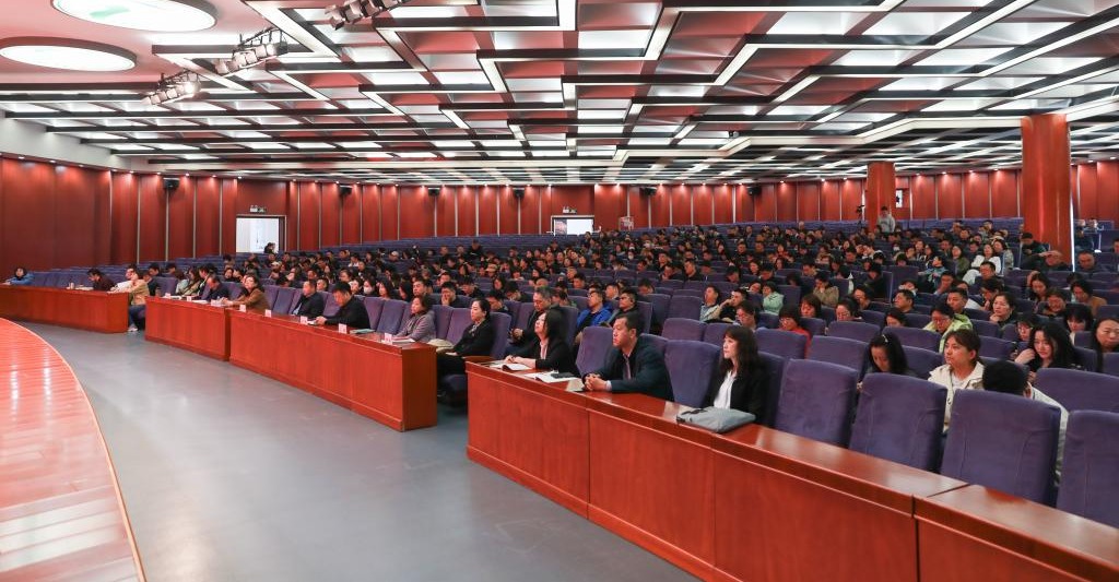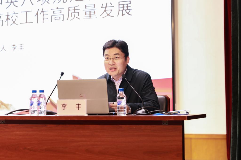 为贯彻落实中央及省市委关于深入贯彻中央八项规定精神学习教育部署要求,推动学习教育走深走实,4月22日,学校党委在会议中心召开理论学习中心组(扩大)会议,邀请长春市纪委监委党风政风监督室李丰副主任作题为“深入学习贯彻中央八项规定精神 以优良作风推进高校工作高质量发展”的专题讲座。学校党委副书记陈贵锋主持会议并讲话,校党委理论学习中心组成员及全体党员干部600余人参加会议。