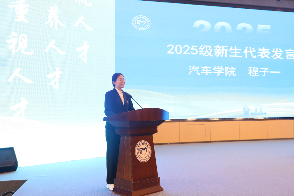 2025级本科生代表汽车学院程子一承诺将学好专业理论知识,勤学苦练专业技能,“以智启技,以勤铸艺”,希望能为长春这座“工业长子”注入新的绿色动能,在中国汽车工业的新篇章中,贡献自己的一份力量。