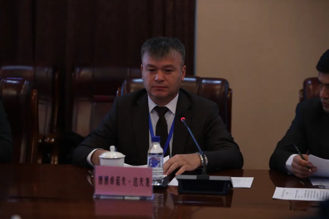 王军校长致欢迎辞,回顾了中塔教育合作基础,围绕“中文+职业技能”融合发展提出五点建议:一是遴选两校优秀青年来校进行访学交流;二是联合中资企业开展塔方就业从业人员的培训;三是人工智能领域或其他两所院校感兴趣的专业进行教师互派交流学习;四是招收塔方两校学生来校进行学历教育;五是聘请国际旅游与创业大学苦盏国际学院教育与语言学院院长鲁斯塔姆佐达·扎夫克丁作为交流使者,促进两校合作交流。