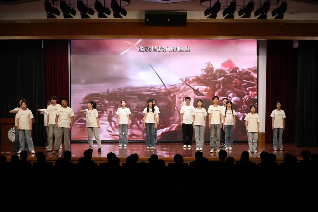 报告会最后,学校晨曦广播站成员以一首诗朗诵《强国有我,青春担当》,表达了青年一代将个人理想融入国家发展的坚定决心,铿锵有力的声音将现场氛围推向高潮。
