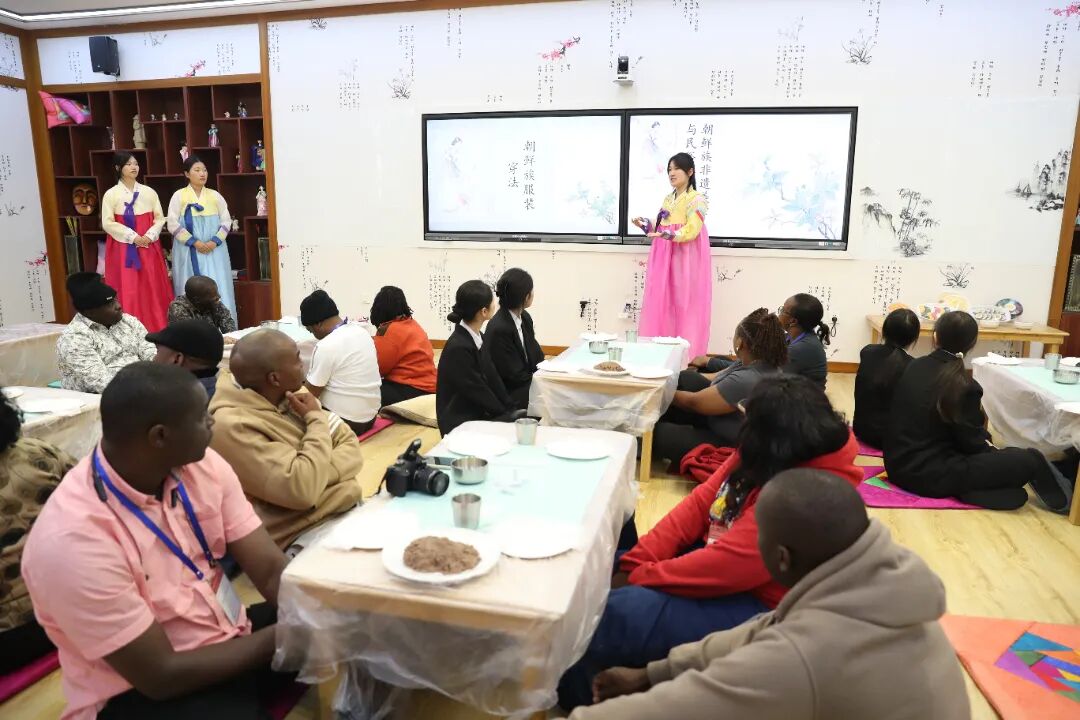 11月11日,beat365官方网站迎来了一批特殊的客人——来自发展中国家的34位外籍学员代表,他们在中央文化和旅游管理干部学院及吉林省文化与旅游厅的组织下,走进校园,开展了一场以“非物质文化遗产”为主题的沉浸式研学活动。活动通过制米糕、品茶香、穿韩服、包蒸饺等多项非遗体验,让国际友人近距离感受中华文化的深厚底蕴与多元魅力。