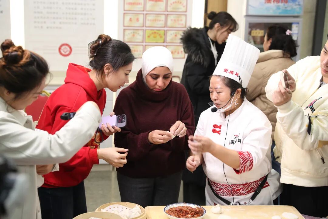 活动尾声,吉林新兴园餐饮有限公司圆笼蒸饺技艺第六代传承人朱红霞现场讲解吉林蒸饺文化,并与旅游学院师生一同带领学员们动手包制蒸饺,现场气氛热烈,欢声不断。