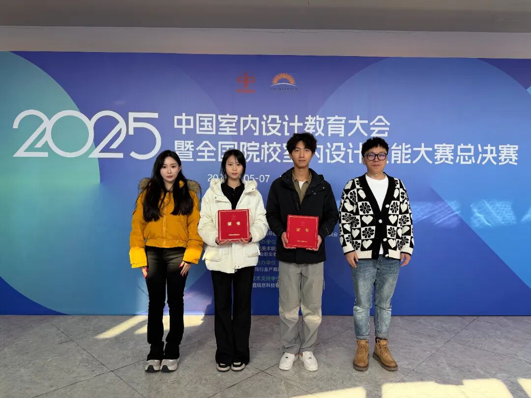 近日,由中国室内装饰协会主办的“2025年全国院校室内设计技能大赛”总决赛在上海工艺美术职业学院举行。beat365艺术学院环境艺术设计专业学生吴昀阳、陈子杰,在指导教师苏立鹏、张杨婧怡的指导下,荣获高职组三等奖。