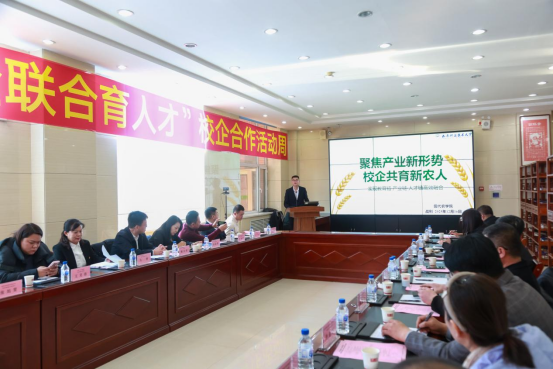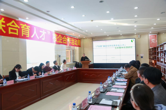 学院副院长战利以《聚焦产业新形势校企共育新农人》为题,结合科技服务实践,介绍校企协同解决产业实际问题的案例;吉林精气神有机农业股份有限公司技术总监朱德富作为企业代表交流合作体会。
