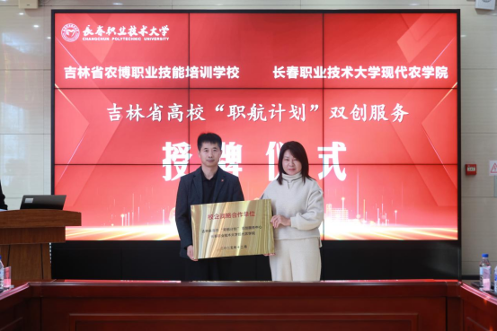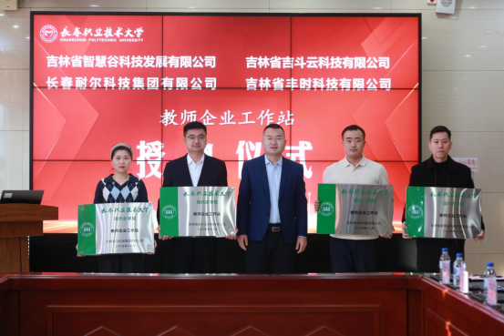 与长春耐尔科技集团等4家企业合作共建“教师企业工作站”,孙利国副院长现场为企业授牌。学院作为吉林省高校“职航计划”双创服务中心,将为在校生提供创业指导、就业支持与项目孵化等一站式服务,马霁枫副院长代表学院接受授牌。