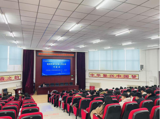 活动期间,学院围绕农业科技前沿,组织开展多场学术交流与技术对话活动,持续推进教育教学与产业创新深度融合。邀请吉林省农业科学院李晓辉教授以“玉米耐盐碱分子育种研究与农业科教融合”为题,为师生带来专题报告;仟客莱集团副总裁张春雨、奥金斯公司高级畜牧师李喜春两位“产业教授”结合企业实例,分别围绕畜牧智能化、肉牛胚胎生物技术等主题进行技术分享与职业指导。