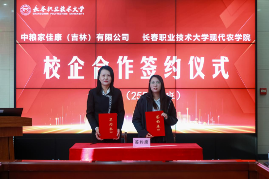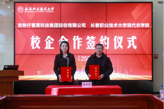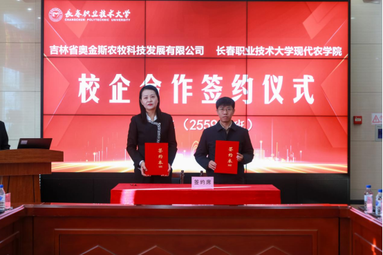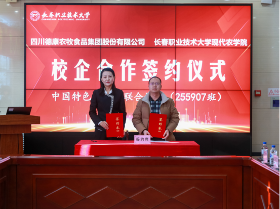 学院与四川德康农牧食品集团股份有限公司、吉林省奥金斯农牧科技发展有限公司、吉林仟客莱科技集团股份有限公司、中粮家佳康(吉林)有限公司4家企业签署“订单班”“学徒制”联合培养协议。