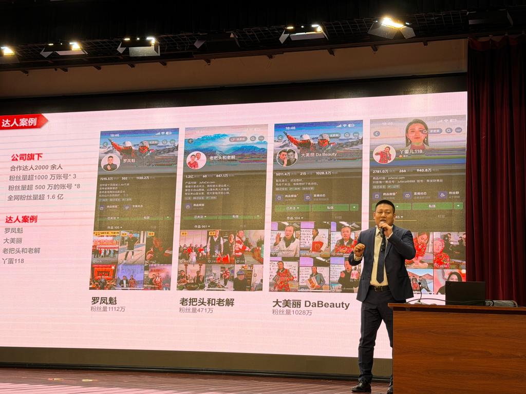 在讲座中,罗凤魁董事长深情回顾了自己的成长经历,讲述了他如何凭借着要“比别人更卖力”的信念,从一名农村少年成长为电商达人,又如何凭借着过人的勇气与执着,三入电商行业,从低谷中重新崛起,终于成为了直播电商时代的领军者。