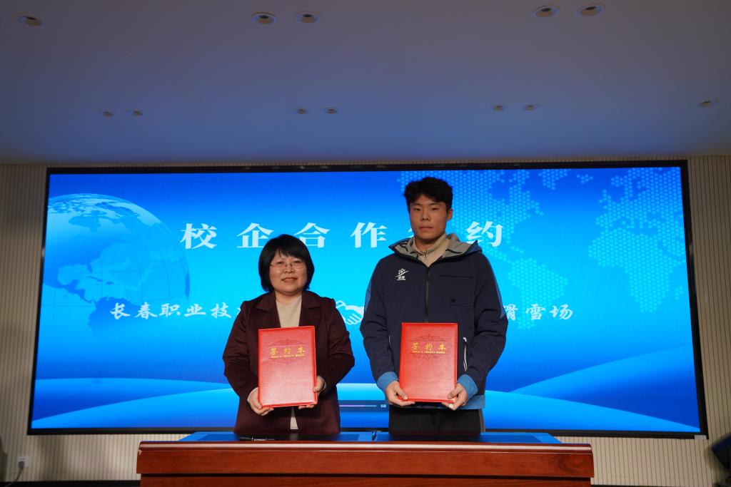申延子院长代表学院,先后与吉林省中庆旅游文化有限公司、长春净月潭旅游发展集团有限公司、中旅松花湖度假区、长春万达滑雪场、长春万达影都酒店群等五家企业签署合作协议。校企双方将在人才输送、课程联合开发、实训基地共建、冰雪及研学订单班组建、双师型师资队伍建设等多元领域开展深度合作,搭建起“教”与“产”、“学”与“用”的坚实桥梁,凝聚校企协同育人的责任与共识。