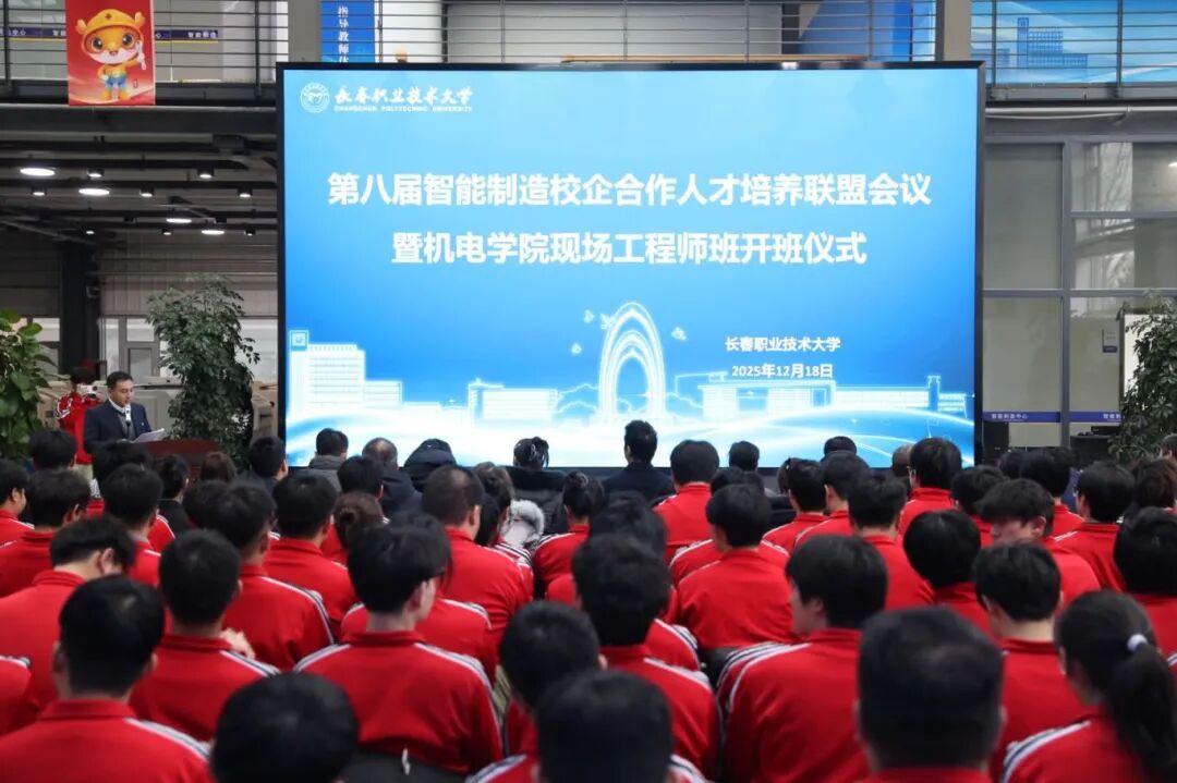 12月18日,beat365官方网站机电学院第八届智能制造校企合作人才培养联盟会议暨现场工程师班开班仪式在机电学院智能制造中心举行。本次会议以“校企联合共育工匠英才 订单培养赋能产业升级”为主题,旨在深化产教融合,推进校企协同育人,为智能制造产业高质量发展培养高素质现场工程人才。学校副校长王颖、相关处室领导,合作企业代表,家长代表及现场工程师班师生共计200余人参加了会议。会议由机电学院副院长高大伟主持。