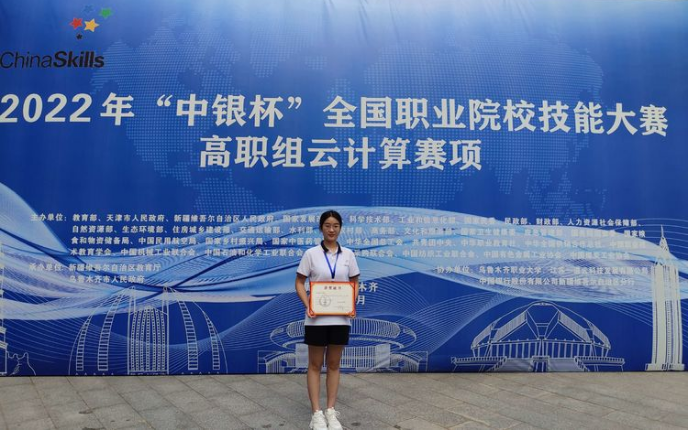 2022年全国职业院校技能大赛高职组“云计算”赛项,于8月1日至4日在乌鲁木齐职业大学举办,有59支来自全国各地的高等职业学校代表队参赛。经过三天紧张激烈的角逐,信息学院现代移动通信技术专业杨雪莹三等奖(指导教师:张静)。