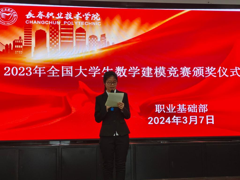 大会伊始,成玉莲部长发表重要讲话。她对获奖同学表示热烈祝贺,强调数学是打开科学大门的钥匙,数学建模为同学们提供了锻炼的平台,希望更多的同学参与到数学建模活动中。