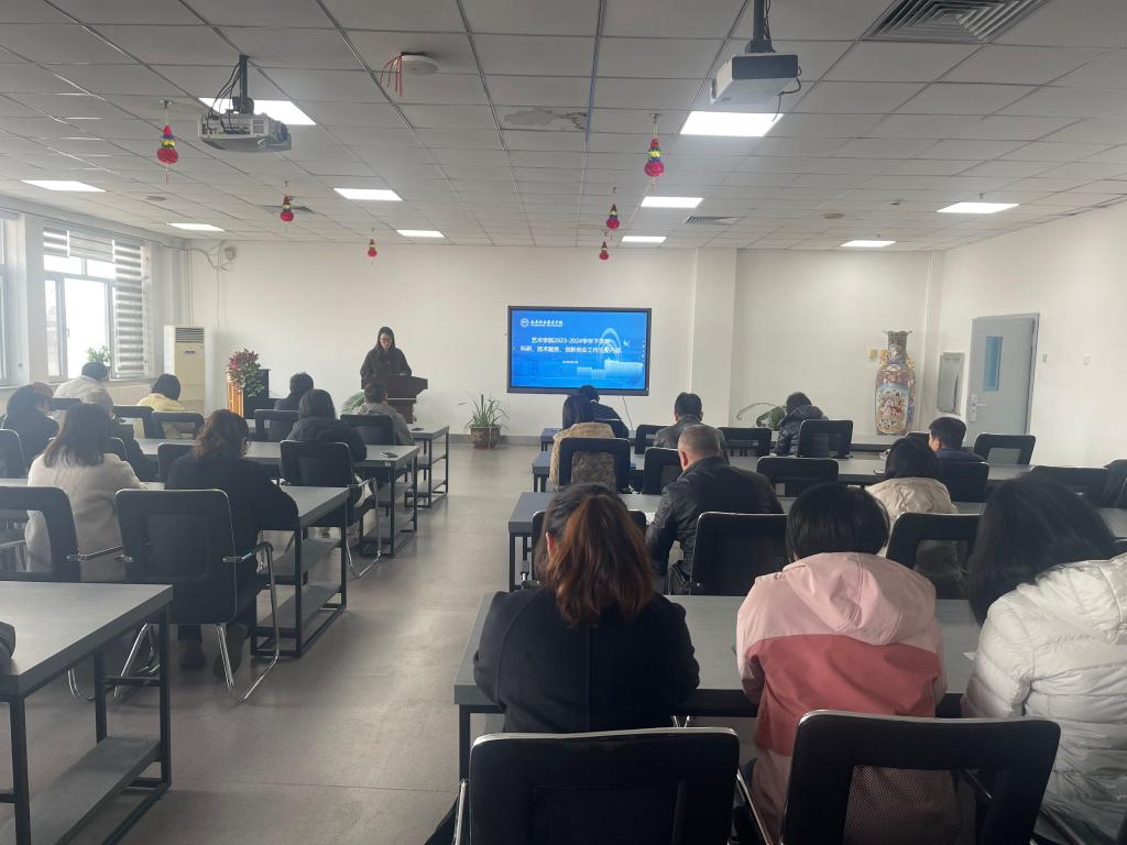 2024年3月19日下午,艺术学院召开了2023-2024学年下学期教科研、技术服务、学生管理、招生就业等专项工作会议。会议由隋秀梅院长主持,学院班子及全体教师参加了会议。