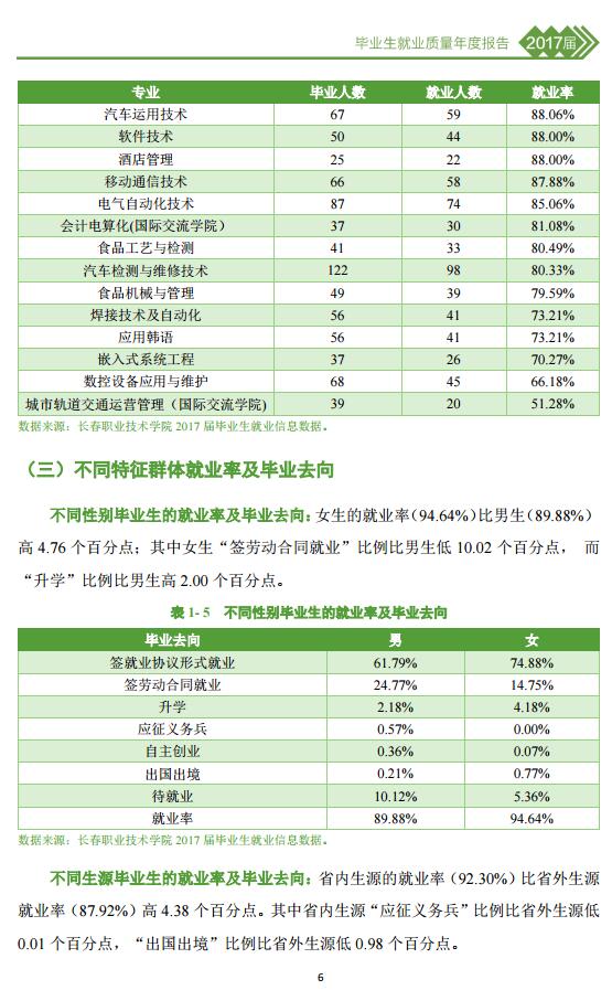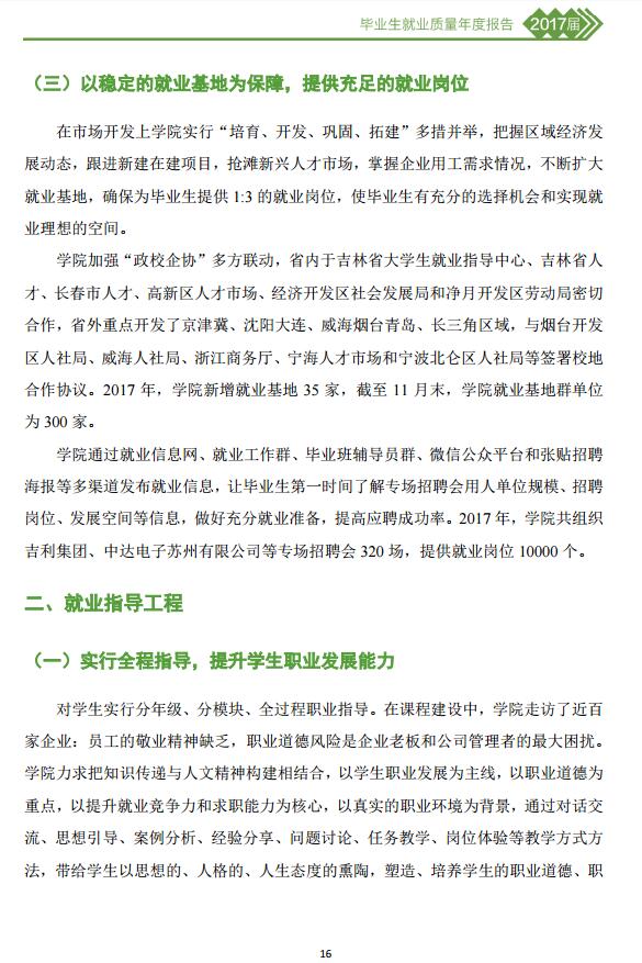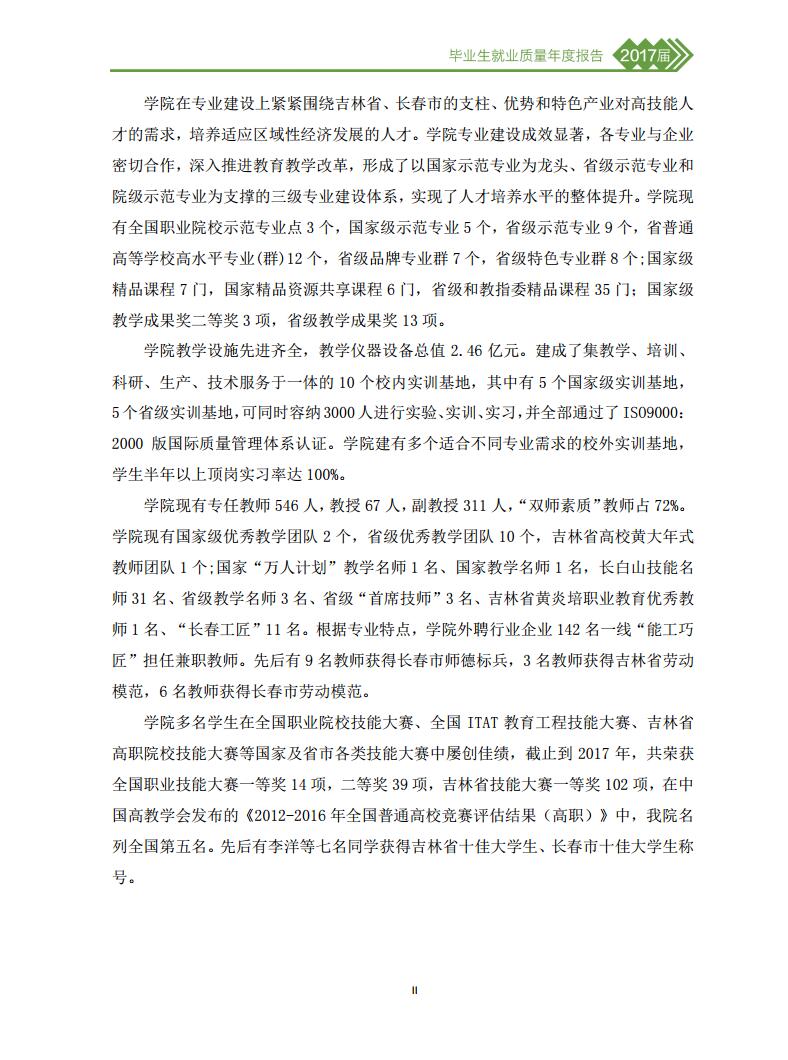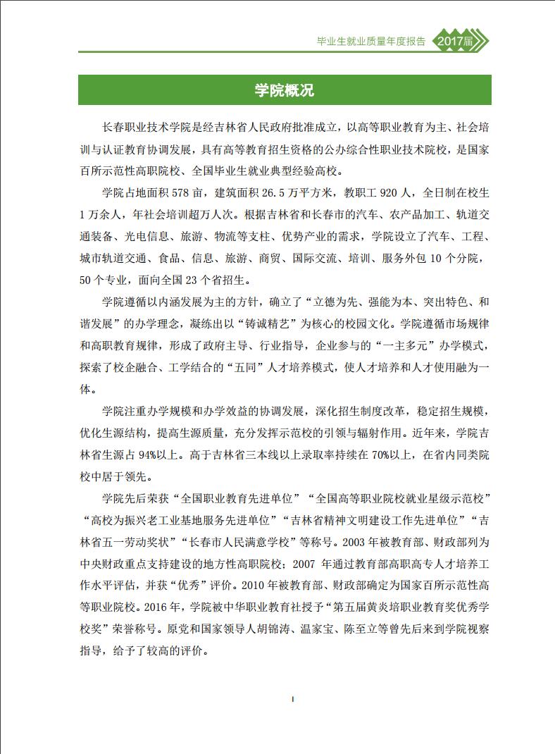 长春职业技术学院2017届毕业生就业质量年度报告
