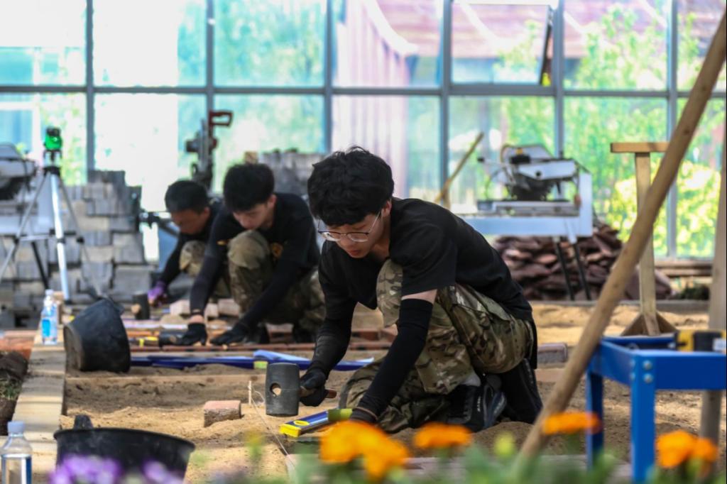 园林景观设计与施工赛项参赛选手进行施工