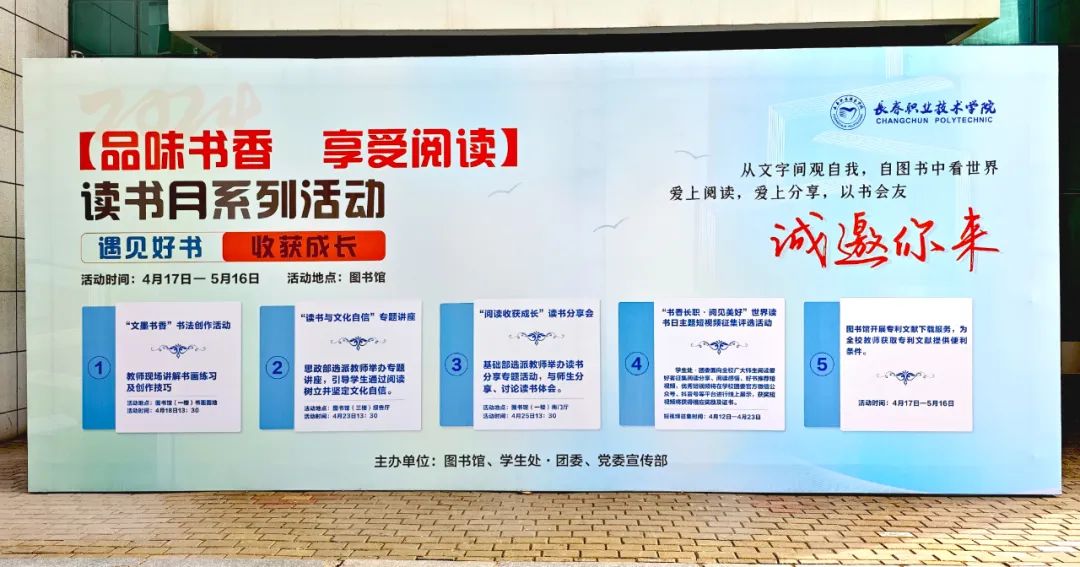 为传播阅读理念,营造阅读氛围,引领爱读书、读好书、善读书的新风尚,深入推进书香校园建设,在第29个世界读书日到来之际,图书馆、学生处·团委、党委宣传部联合主办了本次读书月系列活动,本次活动将持续到5月中旬。活动期间,将举办“文墨书香”书法创作活动、“阅读收获成长”读书分享会、“书香beat365·阅见美好”世界读书日主题短视频征集评选、“书香社区·传播文明”图书进社区等精彩纷呈的特色活动,图书馆组织专人开展专利文献下载服务,为全校教师获取专利文献提供便利条件。